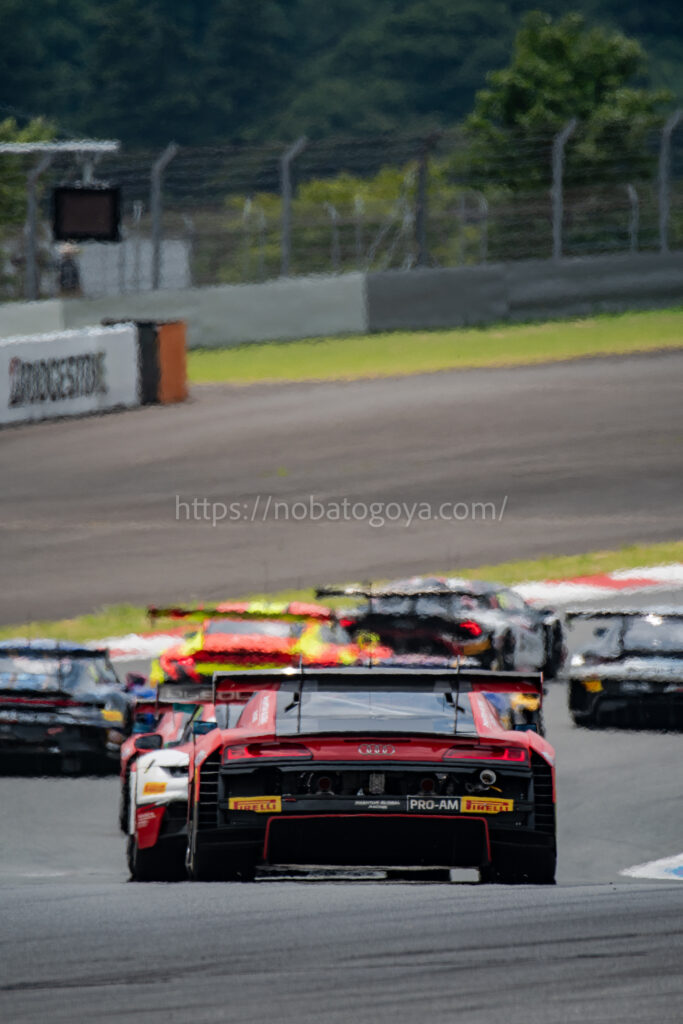 この近くの時期に行けそうなレースが無かったので、7月13日に開催されたGT World Challenge Asia第8戦に行ってきました。GTWCAは2023年以来の観戦です。スタートの様子を後ろから撮影。場所はスープラコーナーから最終コーナーにかけてです。 ピレリのロゴって切っていいんだ……(多分よくない)