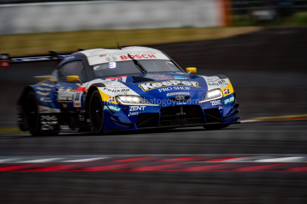 GT500の決勝も同じくスープラコーナーです。au トムスはスプリント特別仕様として給油カバーを隠していました。細かいところまで手を抜かない姿勢はさすがはチャンピオンカーだと感じます。